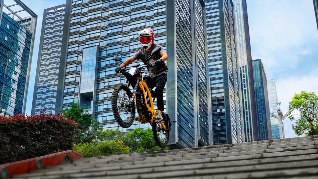 In sports mode, the powerful 5KW output and instant 250N.m torque on-wheel simplify maneuvers like jumping and wheelies. The 19-inch off-road wheel set guarantees excellent passage, preventing any chance of getting stuck, enhancing overall sport performance.
